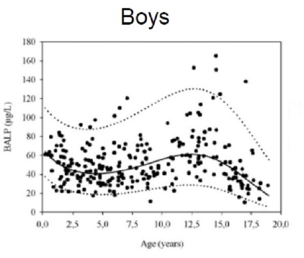 - RAUCHENZAUNER, M.; SCHMID, A.; HEIZ-ERIAN, P.; KAPELARI, K.; FALKENSAMMER, G.; GRIESMACHER, A.; FINKENSTEDT, G. & HÖGLER, W.: Sex- and age-specific reference curves for serum markers of bone turnover in healthy children from 2 months to 18 years. J Clin Endocrinol Metab. 2007 Feb; 92(2):443-9.