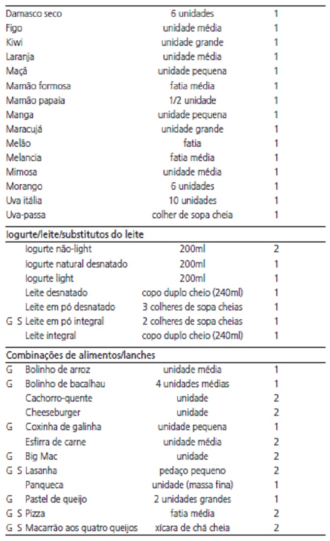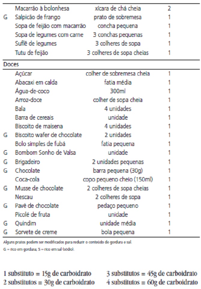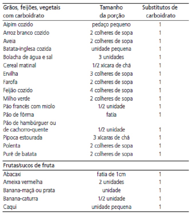 Fonte: Manual oficial decontagem de carboidratos. Sociedade Brasileira de Diabetes, 2009.